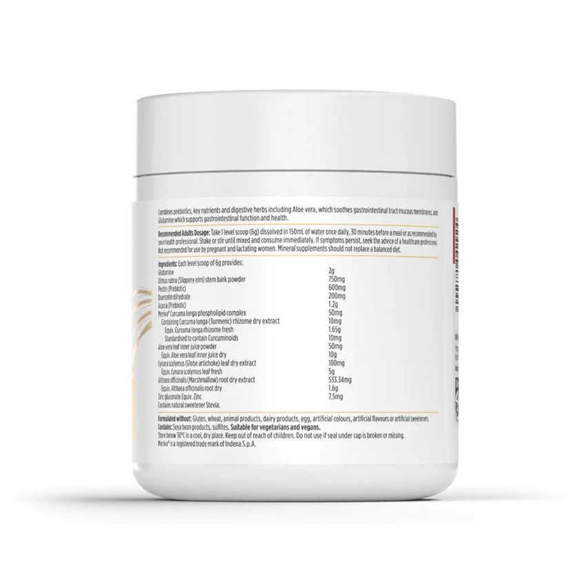 Gut Relief is a great tasting formula that combines the power of prebiotics with key nutrients and plant extracts – slippery elm, marshmallow, aloe vera – to help: