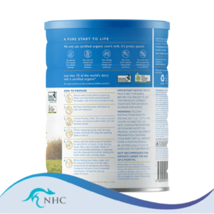 Organic milk solids ( 72.5%) [organic demineralised whey powder (milk), organic liquid skim milk liquid or powder, organic whole milk liquid or powder, organic lactose powder (milk)], Organic vegetable oils [organic sunflower oil, organic canola oil, organic coconut oil, emulsifier (organic soy lecithin)], Organic galacto-oligosaccharides (GOS) (milk), Minerals (calcium carbonate, sodium citrate, potassium citrate, ferrous sulphate, magnesium chloride, potassium chloride, potassium phosphate, calcium phosphate, zinc sulphate, copper sulphate, sodium selenite, manganese sulphate, potassium iodide), Dried DHA (fish) and ARA oils [milk solids, emulsifier (soy lecithin), antioxidants (sodium ascorbate, mixed tocopherols, ascorbyl palmitate)], Organic fructo-oligosaccharides (FOS), Vitamins (sodium ascorbate, vitamin E acetate, niacinamide, vitamin A acetate, vitamin D3, d-biotin, D-calcium pantothenate, folic acid, vitamin K1, thiamin hydrochloride, pyridoxine hydrochloride, vitamin B12).