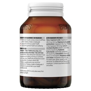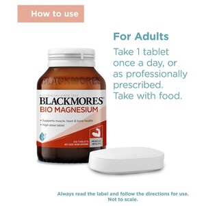 Get relief from muscle cramps when your dietary intake is inadequate, with Blackmores Bio Magnesium. These high dose tablets reduce muscle cramps, tension and stiffness. Formulated with quality ingredients, it delivers a high dose (301.5 mg) of magnesium to support your heart and nervous system health. It also includes two forms of magnesium and extra nutrients, including vitamins B6 and D3. If you need relief from muscle cramps, tension and stiffness, adults should take 1 tablet , once a day.