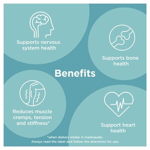 • Reduces muscle cramps, tension and stiffness, when dietary intake is inadequate.