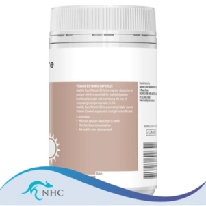 Product Claims: Healthy Care Vitamin D3 helps improve absorption of calcium which is essential for maintaining bone health and strength and minimising the risk of developing osteoporosis later in life.