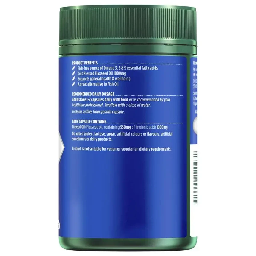 Support Omega levels in the body with Nature’s Own Plant Based Omega Capsules. Each capsule is formulated with 1000mg of cold-pressed flaxseed oil—a fish free source of omega 3, 6 & 9 essential fatty acids. Nature’s Own Plant Based Omega Capsules help you maintain levels of omega essential fatty acids in the body to support your general health and wellbeing. Australian Made® and rigorously tested to ensure quality, potency, and purity, Nature’s Own Plant Based Omega Capsules contain no added gluten, lactose, sugar, artificial colours or flavours, artificial sweeteners or dairy products*. Adults take 1-2 capsules daily with food or as recommended by your healthcare professional. Swallow with a glass of water. Always read the label and follow the directions for use.