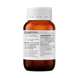 Active Ingredients: Lactobacillus acidophilus CUL 60 6.75 billion CFU, Bifidobacterium lactis BI-04 2 billion CFU, Lactobacillus acidophilus CUL 21 6.75 billion CFU, Bifidobacterium bifidum CUL 20 225 million CFU, Bifidobacterium animalis subsp lactis CUL 34 4.275 billion CFU (Total good bacteria 20 billion CFU) Inulin (prebiotic) 100 mg, Ascorbic acid (vitamin C) 200 mg, Zinc citrate (zinc 5 mg) 16.2 mg.
