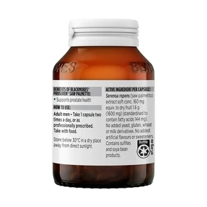 Help support the health of your prostate with Blackmores Proseren Saw Palmetto capsules. These men's health supplements also support male urinary tract health. The formula contains a standardised extract of the herb serenoa, commonly known as saw palmetto. This herbal plant is used in traditional medicine to support prostate health and function. Adults: Take one capsule a day with food.