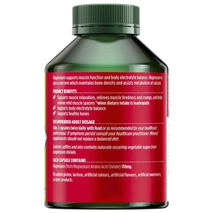 Help relieve mild muscle spasms and muscle cramps with Nature’s Own Magnesium Chelate 500mg capsules. Each capsule provides 110mg of Magnesium (from Magnesium Amino Acid Chelate), which helps the body maintain electrolyte balance, supports muscle function and relaxation, and also relieves muscle tiredness, helps relieve mild muscle spasms and muscle cramps when dietary intake is inadequate. In addition, Magnesium supports bone health, maintains bone density, and assists metabolism of calcium. Australian Made® and rigorously tested to ensure quality, potency, and purity, Nature’s Own Magnesium Chelate 500mg tablets contain no added gluten, lactose, artificial colours, artificial flavours, artificial sweeteners, or dairy products.* Adults: Take 2 capsules twice daily with food or as recommended by your healthcare professional. If symptoms persist consult your healthcare practitioner. Mineral supplements should not replace a balanced diet. Always read the label and follow the directions for use.