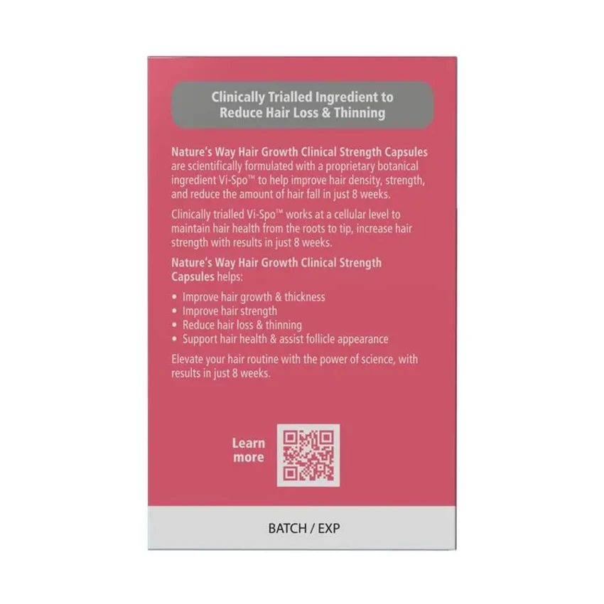 Nature's Way Hair Growth Clinical Strength Capsules are scientifically formulated with a proprietary botanical ingredient to help improve hair density, strength, and reduce the amount of hair fall in just 8 weeks.