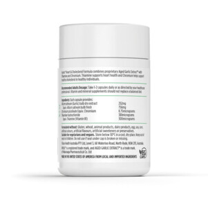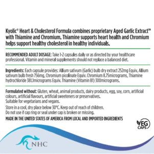 Kyolic® Heart & Cholesterol Formula combines proprietary Aged Garlic Extract™ with Thiamine and Chromium. Kyolic® Aged Garlic Extract™ is the result of a proprietary ageing process of up to 20 months, that transforms the natural sulfur compounds in organically-grown garlic into a range of beneficial, water-soluble, odourless compounds. Thiamine supports heart health and Chromium helps support healthy cholesterol in healthy individuals.