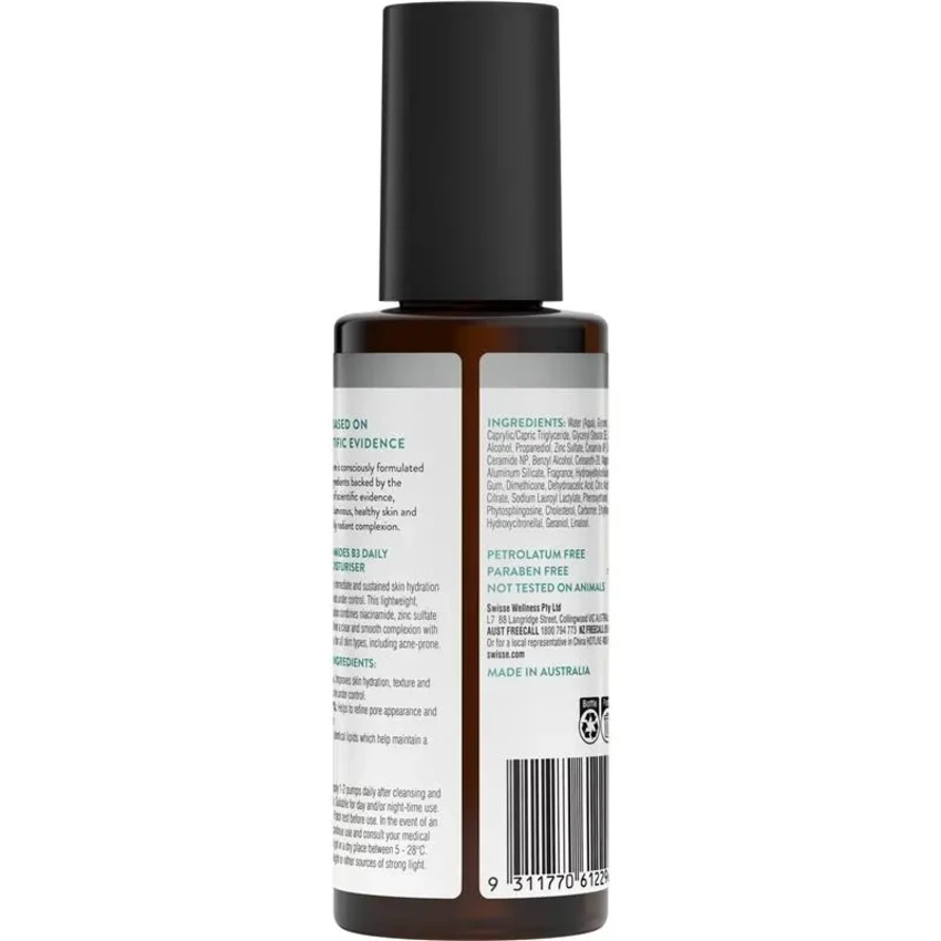 Hydrate and nourish your skin with a moisturiser designed to keep breakouts under control. Swisse Ceramides B3 Daily Balance Moisturiser contains niacinamide, zinc sulfate, and ceramides to support a clear and smooth complexion with ongoing use. Suitable for use as both a day and night moisturiser.