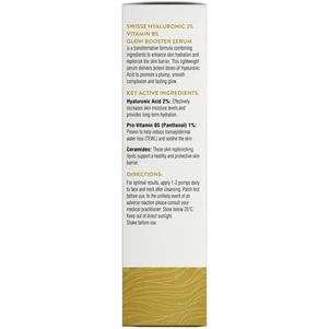 Unveil dewy, ultra-hydrated skin with Swisse Skincare Hyaluronic 2% Vitamin B5 Glow Booster Serum. This blend of hyaluronic acid, vitamin B5, and ceramides visibly boosts your skin's hydration levels, offering a smooth and refreshed complexion. Ideal for maintaining a vibrant, daily glow, this serum delivers visible hydration while protecting your skin from daily environmental stressors. Refresh your skincare routine for a visibly rejuvenated complexion.