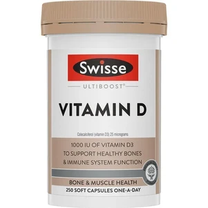 Swisse Ultiboost Vitamin D supports bone and teeth health helps maintain Vitamin D levels in the body where exposure to sunlight is inadequate. It also supports dietary calcium absorption and supports immune system health and function.