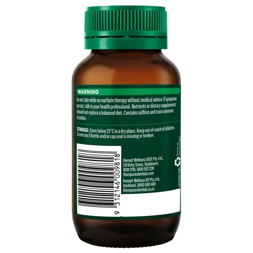 Do not take while on warfarin therapy without medical advice. If symptoms persist, talk to your health professional. Nutrients or dietary supplements should not replace a balanced diet. Contains sulfites and trace amounts of pollen.