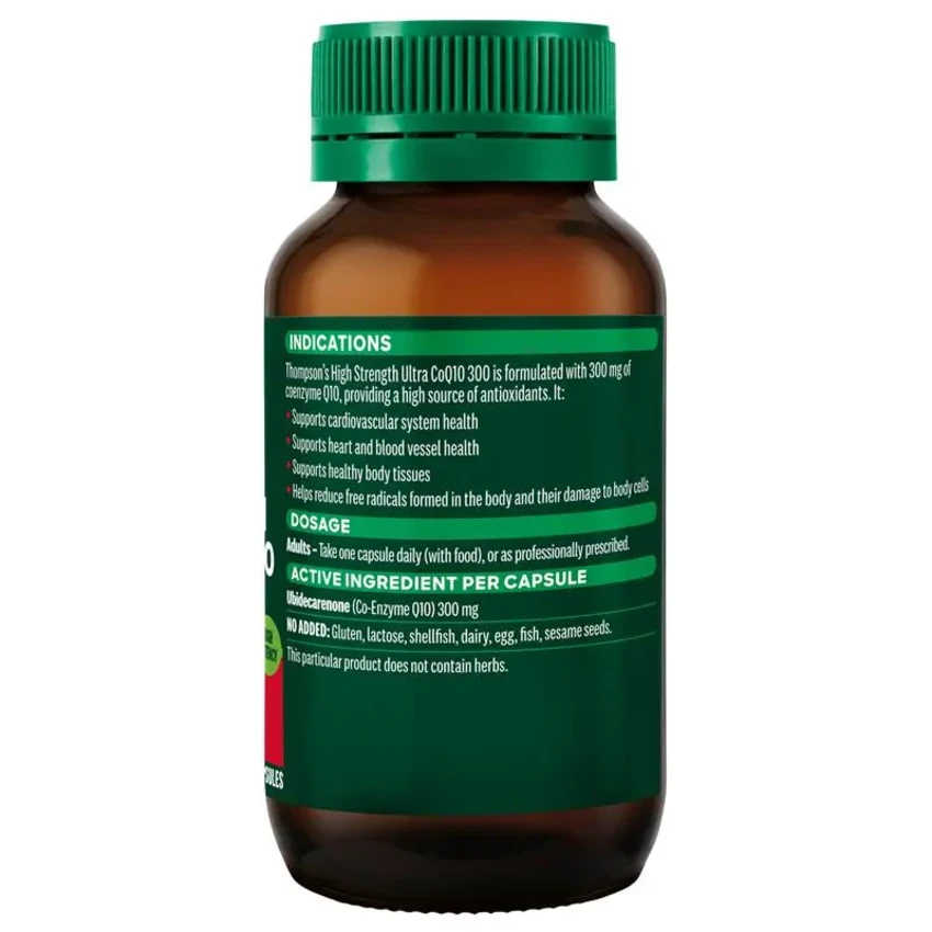 Thompson's High Strength Ultra CoQ10 300 is formulated with 300 mg of coenzyme Q10, providing a high source of antioxidant. It:
