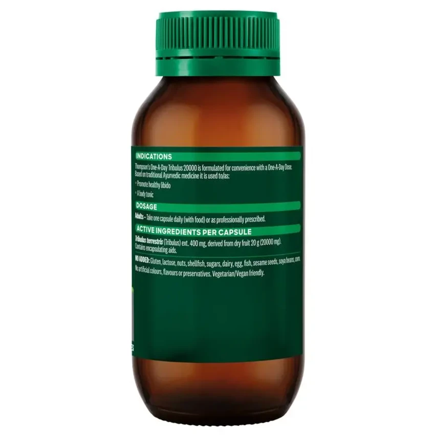 Thompson's One-A-Day Tribulus 20000 is a body tonic to promote healthy libido, based on traditional Ayurvedic medicine.