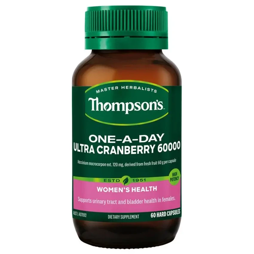Thompson's One-A-Day Ultra Cranberry 60000 supports urinary tract and bladder health in females.