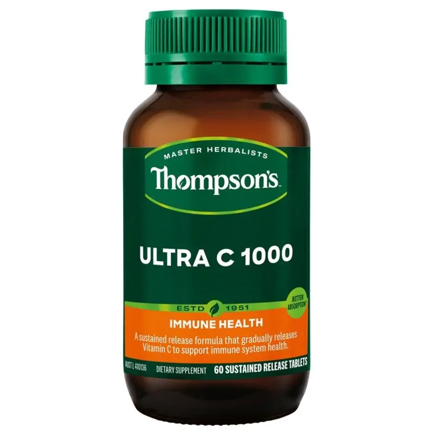 Thompson's Ultra C 1000 is a sustained release formula. It gradually supplies Vitamin C throughout the day delivering greater absorption*. It is used to/as: