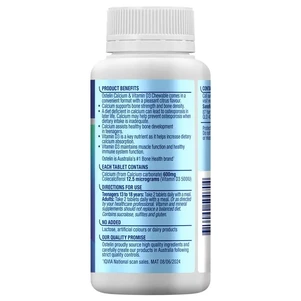 Support your bone strength, muscle function, and healthy immune system function with Ostelin Calcium & Vitamin D3 Chewable Tablets 60. Ostelin Calcium & Vitamin D3 Chewable Tablets are a supplement designed to support bone strength and bone density–and the citrus-flavoured chewable tablets are a convenient alternative to swallowing tablets. Each tablet contains a combination of Vitamin D3 and Calcium Carbonate, and works to support bone strength. Vitamin D3 increases the body's absorption of calcium. Calcium is a building block of bones, and each tablet provides 600 mg of elemental calcium. Ostelin Calcium & Vitamin D3 Chewable Tablets provide a convenient way to support bone density and bone strength. Adults and teens 13-18 years, chew 2 tablets daily with a meal, or as directed by your healthcare professional.