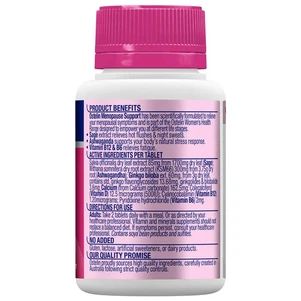 Ostelin Women's Health Menopause Support has been scientifically formulated with key ingredients as Sage, Ashwagandha, and Vitamin B12 and B6 , to relieve menopause symtpoms as part of the Ostelin Women's Health Range designed to empower and support you at different life stages, it works to: