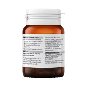 Help support your baby's development. Blackmores I-Folic™ is a combination of iodine and folic acid, two important preconception and pregnancy nutrients. This dietary supplement delivers a convenient one-a-day dose of important nutrients for healthy foetal development. This easy-to-swallow tablet contains iodine and folic acid for women during pre-conception and pregnancy. Adults: Take one tablet once a day. Take with food.