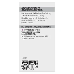 (PRE ORDER) Blackmores Iron Rapi-Melt 90 Tablets shelf life 2yrs