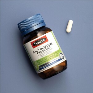 Swisse Ultibiotic Daily Digestive Probiotic maintains healthy digestion, reduces symptoms of digestive discomfort, and restores beneficial gut flora. Available in a convenient fridge-free format, this premium quality formula combines three clinically trialled* strains - Bifidobacterium lactis (HN019), Bifidobacterium lactis (BI-04), and Lactobacillus acidophilus (La-14) – that are specifically formulated to support digestive health and wellbeing. *Waller, P. A. et al. Dose-response effect of Bifidobacterium lactis HN019 on whole gut transit time and functional gastrointestinal symptoms in adults. Scand J Gastroenterol 46, 1057–1064 (2011). Miller, L. E. & Ouwehand, A. C. Probiotic supplementation decreases intestinal transit time: Meta-analysis of randomized controlled trials. World Journal of Gastroenterology 19, 4718–4725 (2013). West et al 2013, Probiotic supplementation for respiratory and gastrointestinal illness symptoms in healthy physically active individuals.
