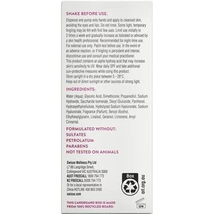 Embrace the night with Swisse Skincare Glycolic 10% Resurfacing Night Serum. Infused with glycolic acid, pro-vitamin B5, and hyaluronic acid, this serum works perfectly in a nighttime ritual. Glycolic acid gently exfoliates and evens out the complexion, hyaluronic acid hydrates, and illuminates your skin and Pro Vitamin B5 soothes it. Wake up to visibly refreshed skin with Swisse Skincare Glycolic 10% Resurfacing Night Serum.